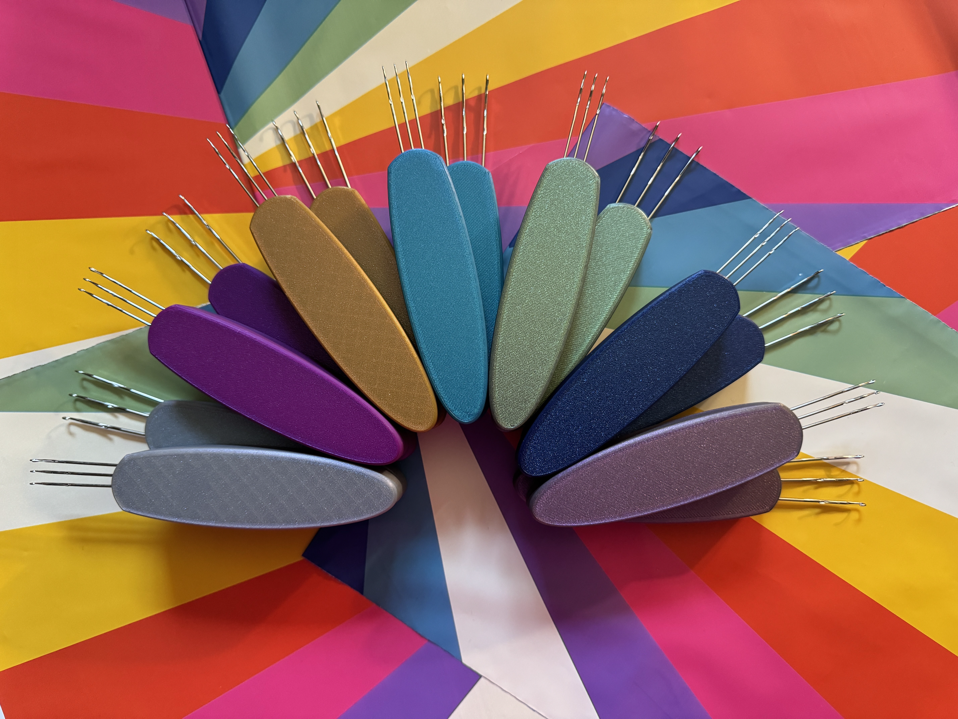 Colors L-R: Mercury, Magenta, Antique gold, Teal, Sage green, Navy blue, Nebula